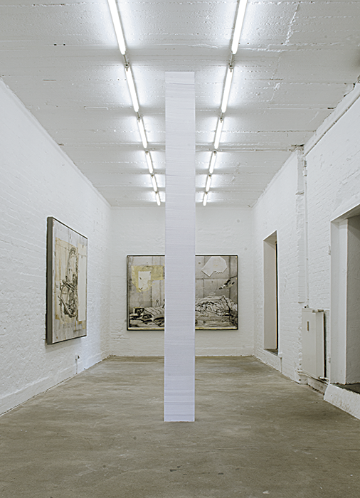 Eine Säule, die vorgibt, dass ohne ihr Vorhandensein der Raum statisch unwirksam wäre. Deutlich wird hierbei eine Hinterfragung, fast schon Hilflosigkeit gegenüber immer beschleunigenden Prozessen der Mechanisierung und Technisierung. Säulen, die das, dem wir nicht trauen, tragen müssen.