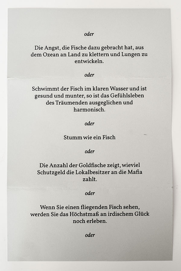 eine Zitatsammlung über Fische auf einem Blatt Papier
